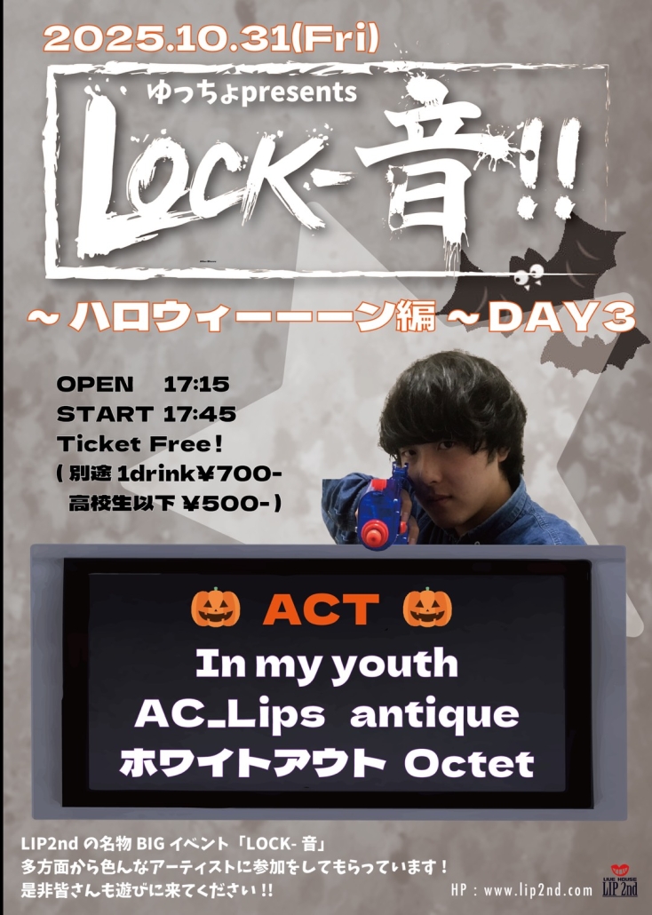 2025/10/31 Fri 「LOCK-音!! ~ハロウィーーン編~ DAY3」 スケジュール 2025年10月1日/作成者: @lip2nd http://lip2nd.com/wp-content/uploads/2021/03/logo_01.png 0 0 @lip2nd http://lip2nd.com/wp-content/uploads/2021/03/logo_01.png @lip2nd2025-10-01 22:07:582025-10-01 22:07:582025/10/31 Fri 「LOCK-音!! ~ハロウィーーン編~ DAY3」
